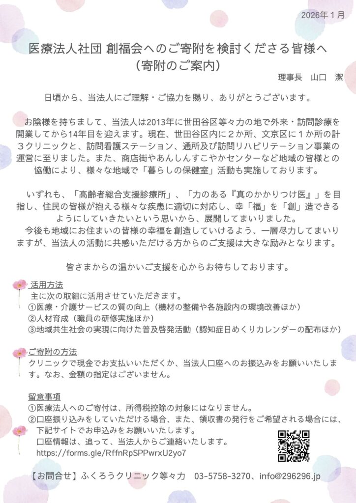 医療法人社団創福会ふくろうクリニック等々力は認知症、がん、フレイル、神経難病、障がい者の専門医療のチームです。